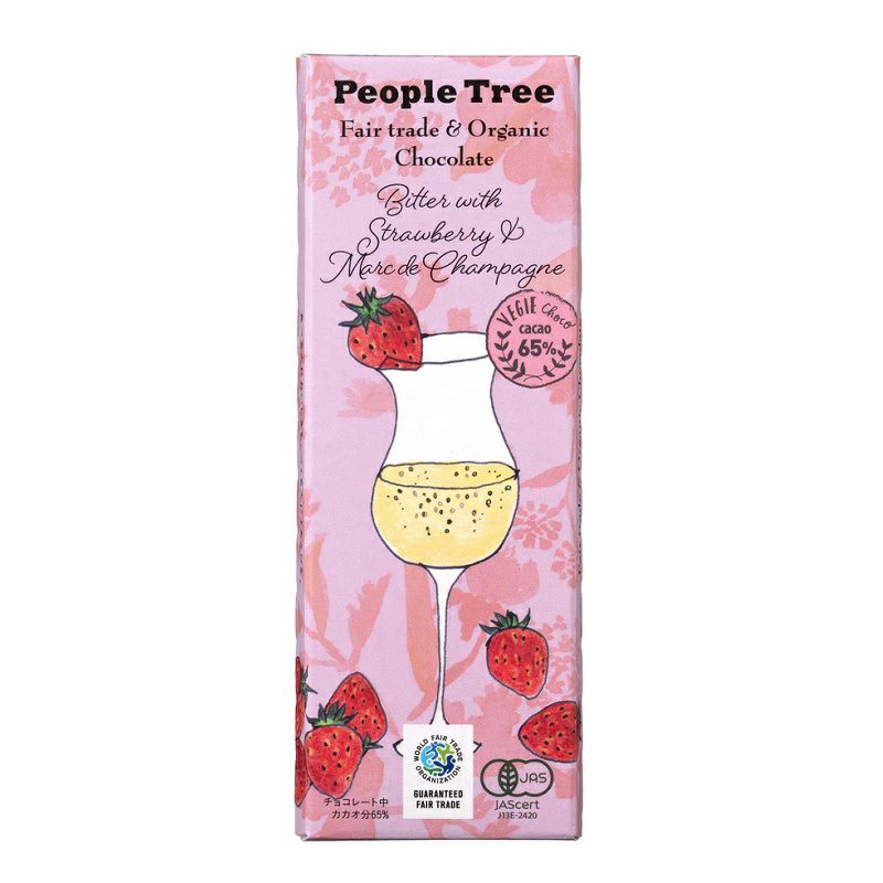 | 商品名 | People Tree ピープルツリー フェアトレード&オーガニックチョコ ビター ウィズ ストロベリー&マール・ド・シャンパーニュ 50g 動物性原材料不使用 ヴィーガン |