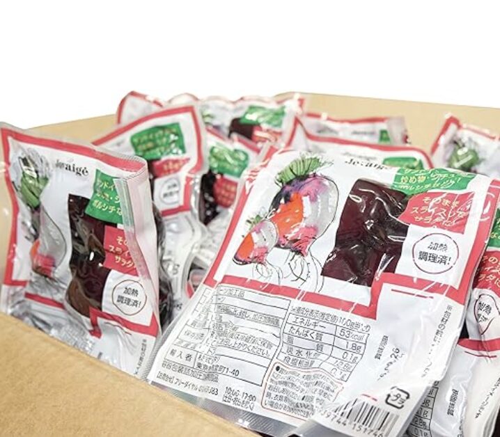 西友では、生のビーツだけでなく水煮タイプやオーガニック野菜セットに含まれるビーツも見かけたという口コミがあります。特にリトアニア産の水煮ビーツが販売されていた例があり、輸入食品コーナーやネットスーパーで購入しやすいようです。