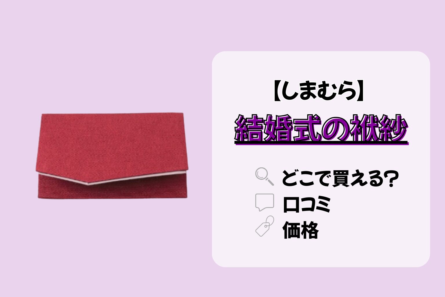 しまむら以外の販売店舗について詳しい情報は「【しまむら情報】結婚式の袱紗はどこで買える?価格・口コミなど店舗情報まとめ」の記事でまとめていますので、是非ご参考ください。