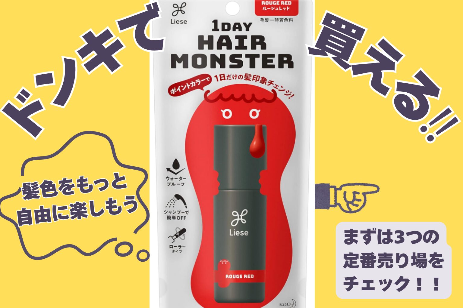 - ドンキでヘアモンスターを購入するには、ヘアケア・スタイリング用品コーナー、コスメ・メイクアップコーナー、バラエティ・トレンド商品コーナーを探してみてください。