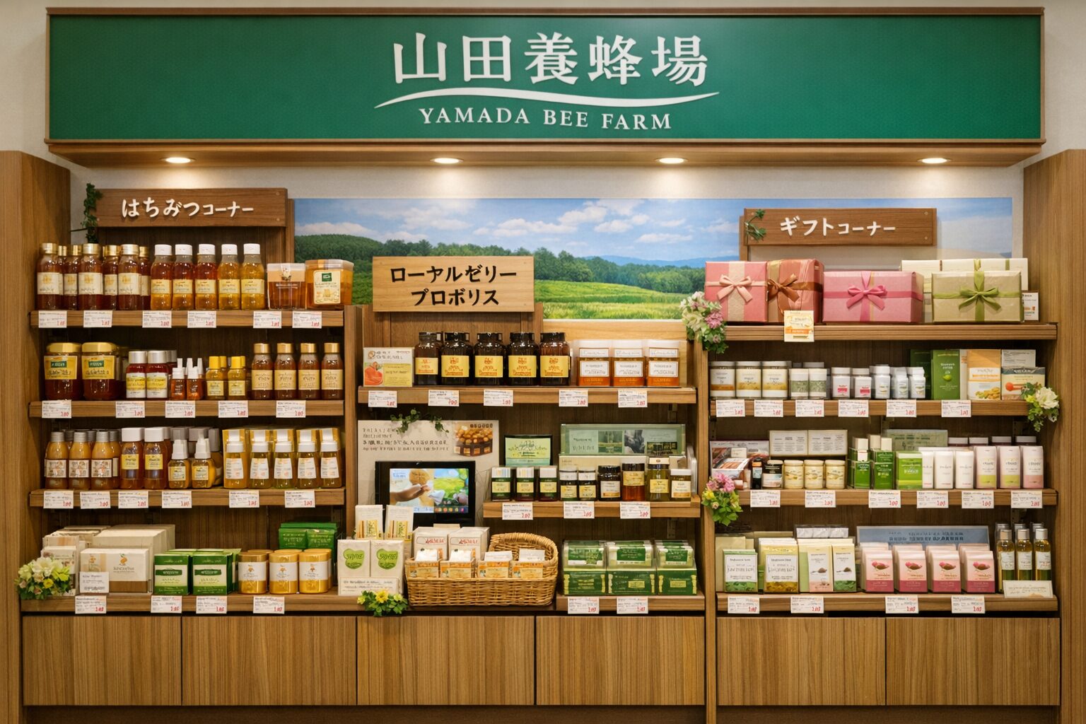 同じ山田養蜂場でも店舗によって陳列されている場所が異なることもありますので、それぞれのコーナーをご確認ください!
