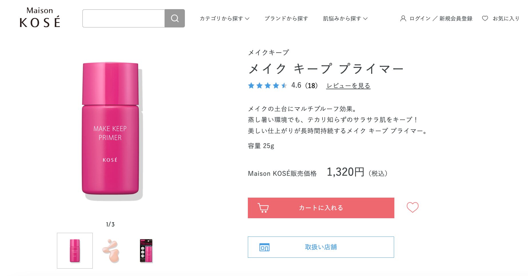 2025年6月時点では、メイクキーププライマーはメゾンコーセーオンラインショップで1,320円で販売しています。