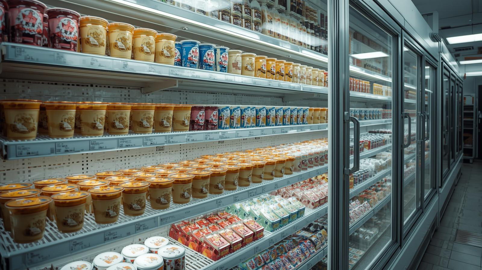 レジ近くや店内奥の壁沿いにあることが多く、最も見つけやすい定番の売り場です。プリンやシュークリーム、ロールケーキなどが並ぶ冷蔵スイーツ棚で、新作や人気商品もここに集まることが多いです。