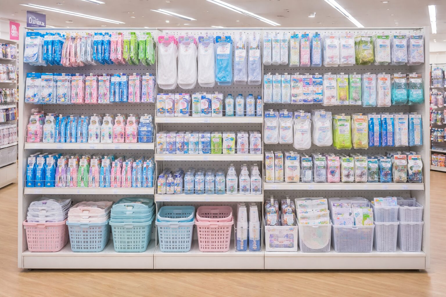 洗剤、柔軟剤、洗濯ネット、物干し用品などがまとめられているエリアに陳列されていることが多く、液体洗剤や仕上げ剤の近くに置かれているケースがよく見られます。