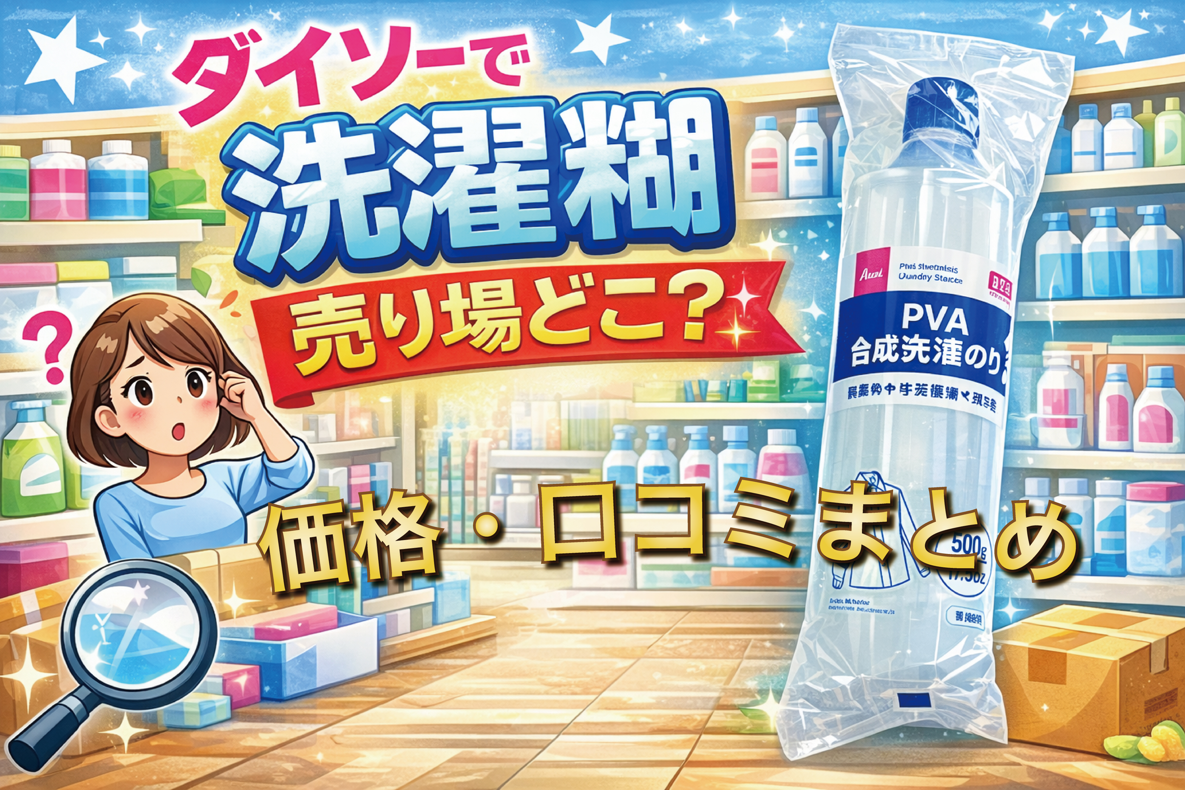 ダイソーでの洗濯糊(PVA合成洗濯のり)の販売状況や口コミを調査しました。