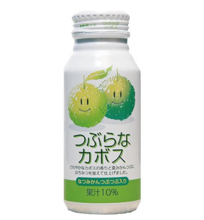 つぶらなカボスは、大分県産のかぼす果汁を使った清涼飲料水で、夏みかんのつぶつぶ果肉入りが特徴のジュースです。