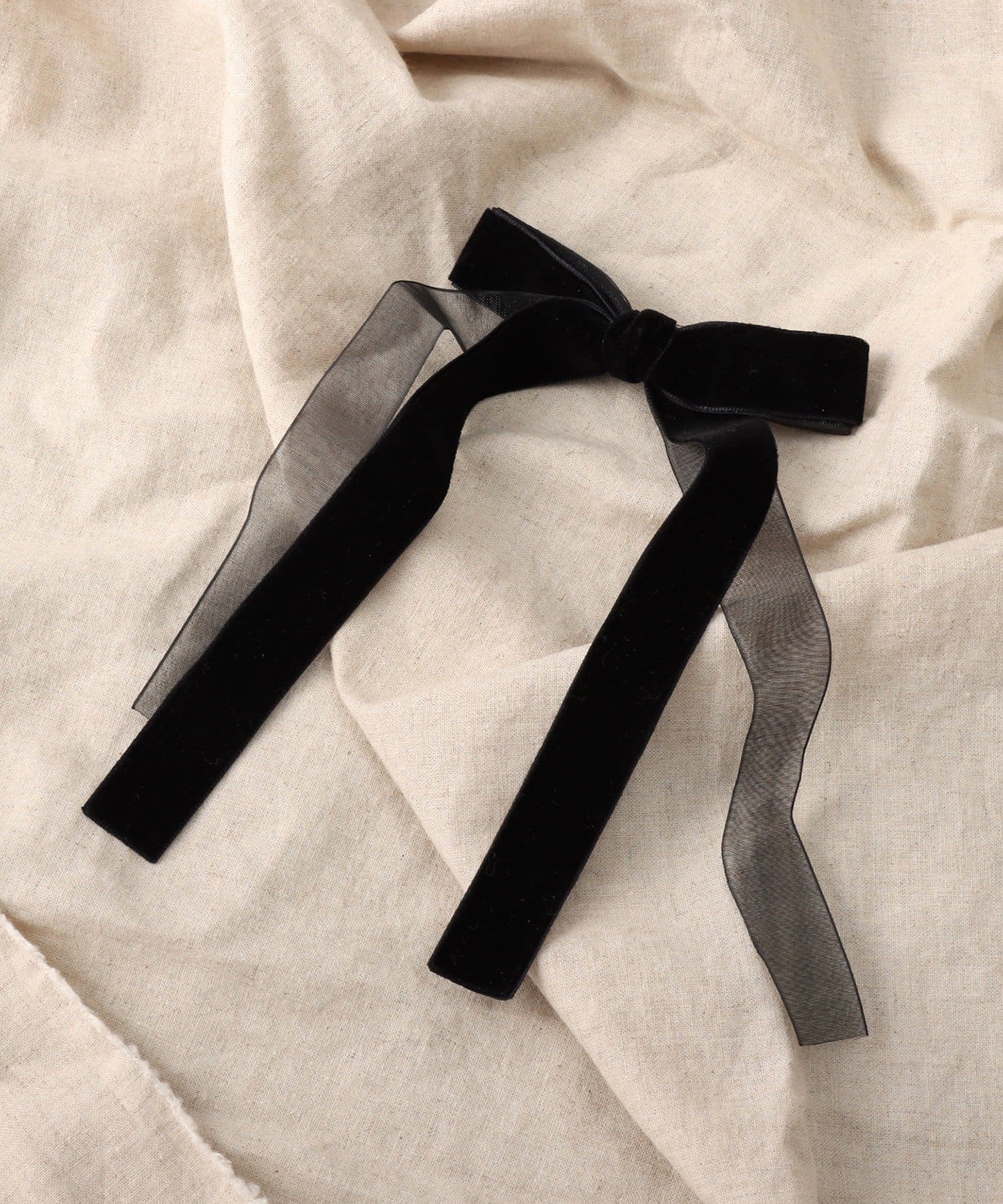 - スリーコインズのチュール重ねベロアリボンクリップ