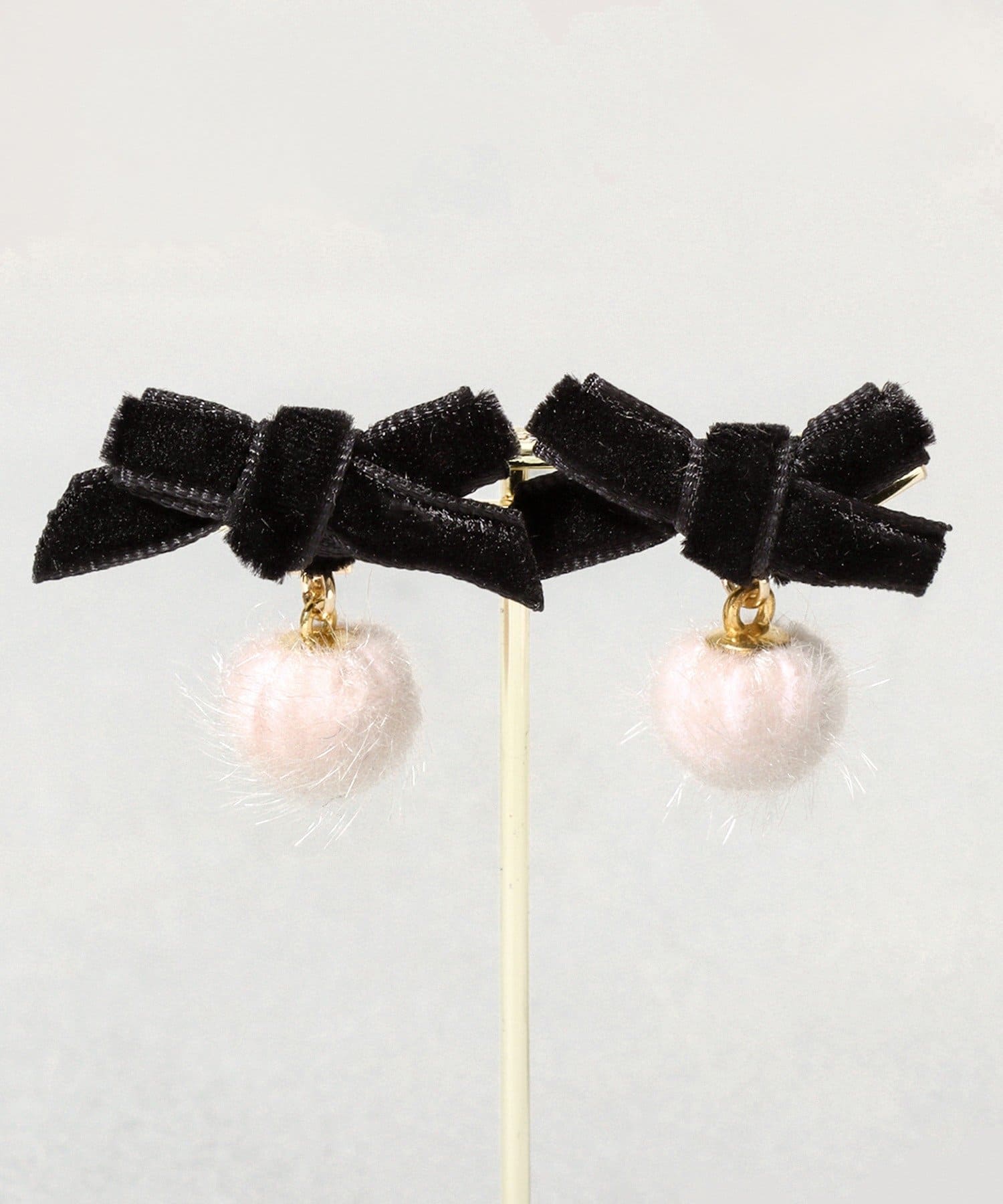 スリーコインズのベロアリボンファーピアスは、ベロアリボンとふわふわファーが揺れる、大人可愛いピアスです。